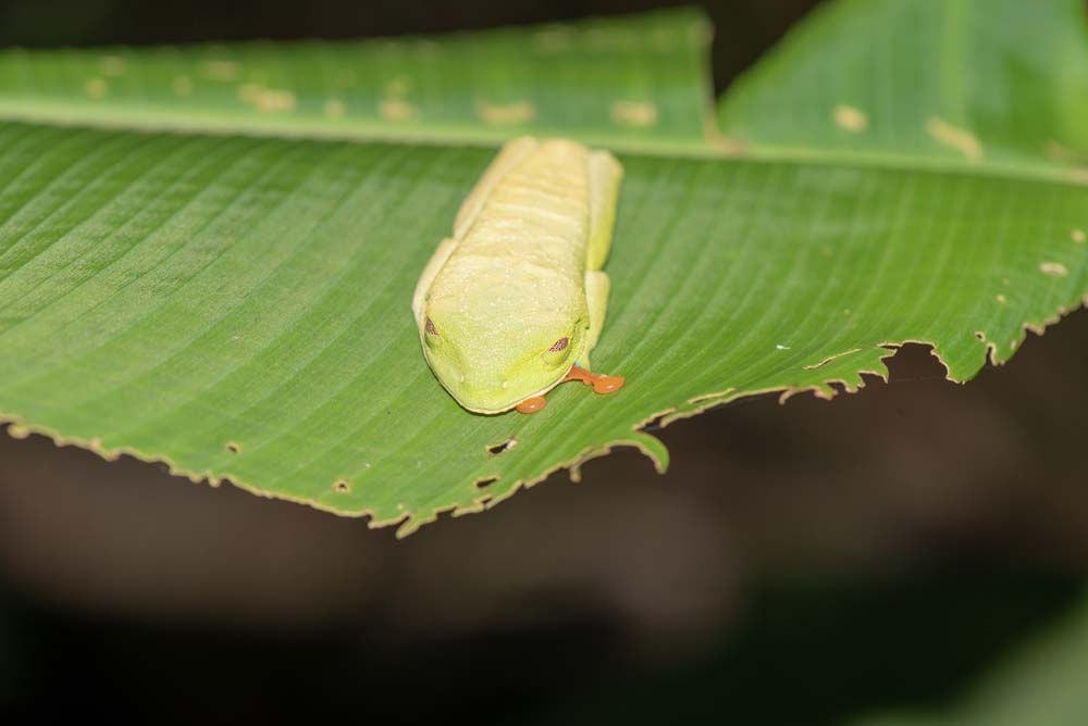 Schlafender Rotaugenlaubfrosch auf Blatt